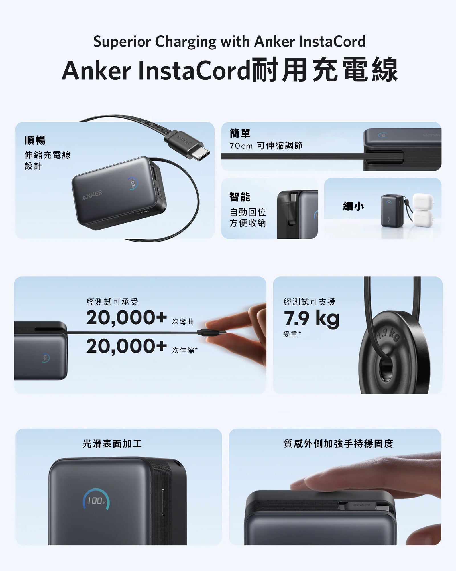 Anker Nano Power Bank (10K, 45W, Built-In Retractable USB-C Cable) 10000mAh 行動電源