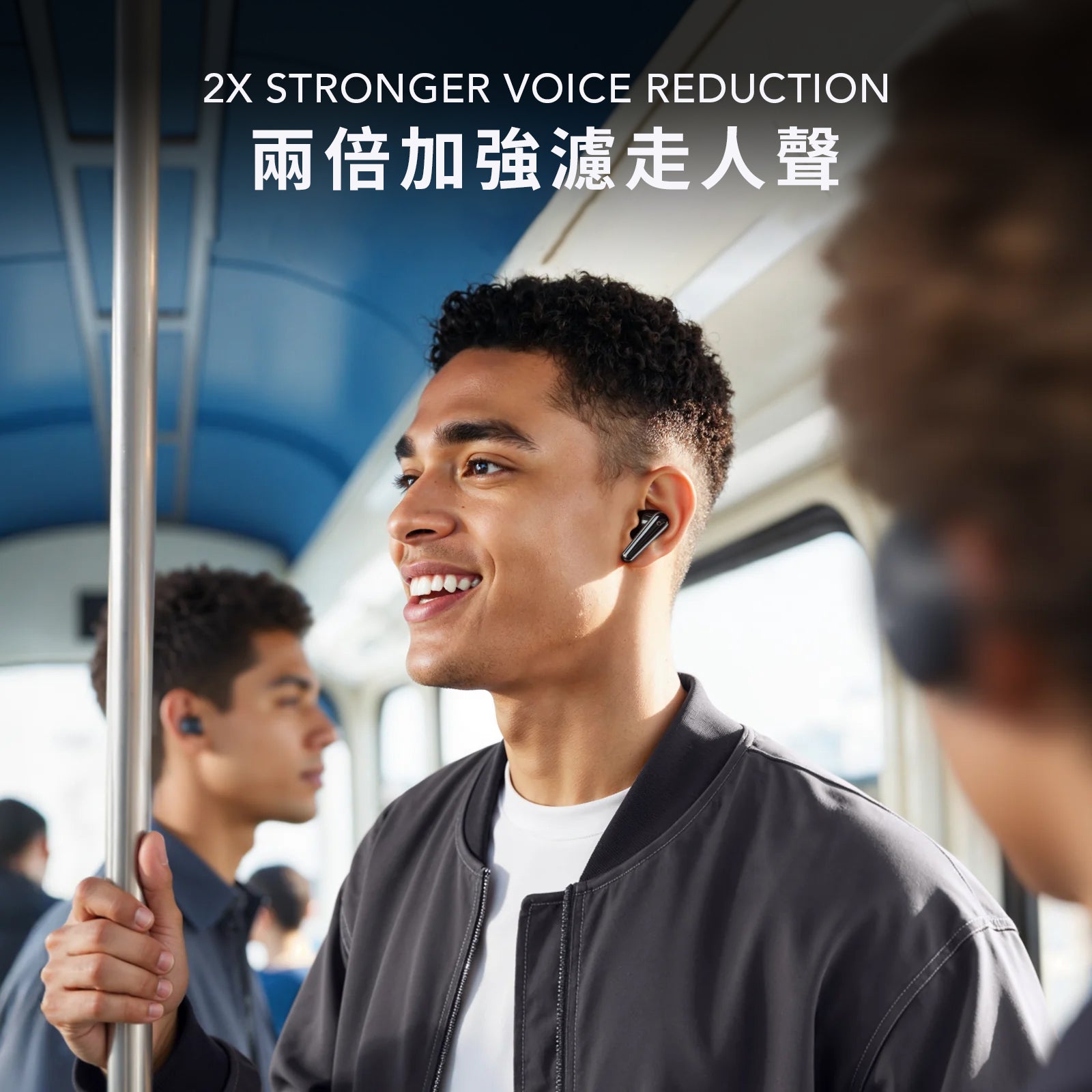 採用 Adaptive ANC 3.0 自適應降噪技術及特製 S 型聲腔有效地抑制及阻擋外界噪音,尤其針對人聲,讓你在不同情景下也能安靜地享受你的旅程。
