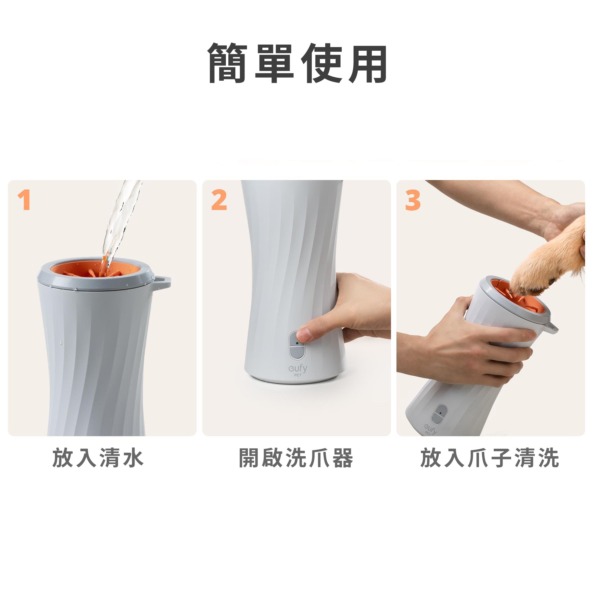 只需放入清水,按下開關,把狗爪子放入洗爪器,便能輕鬆清潔。